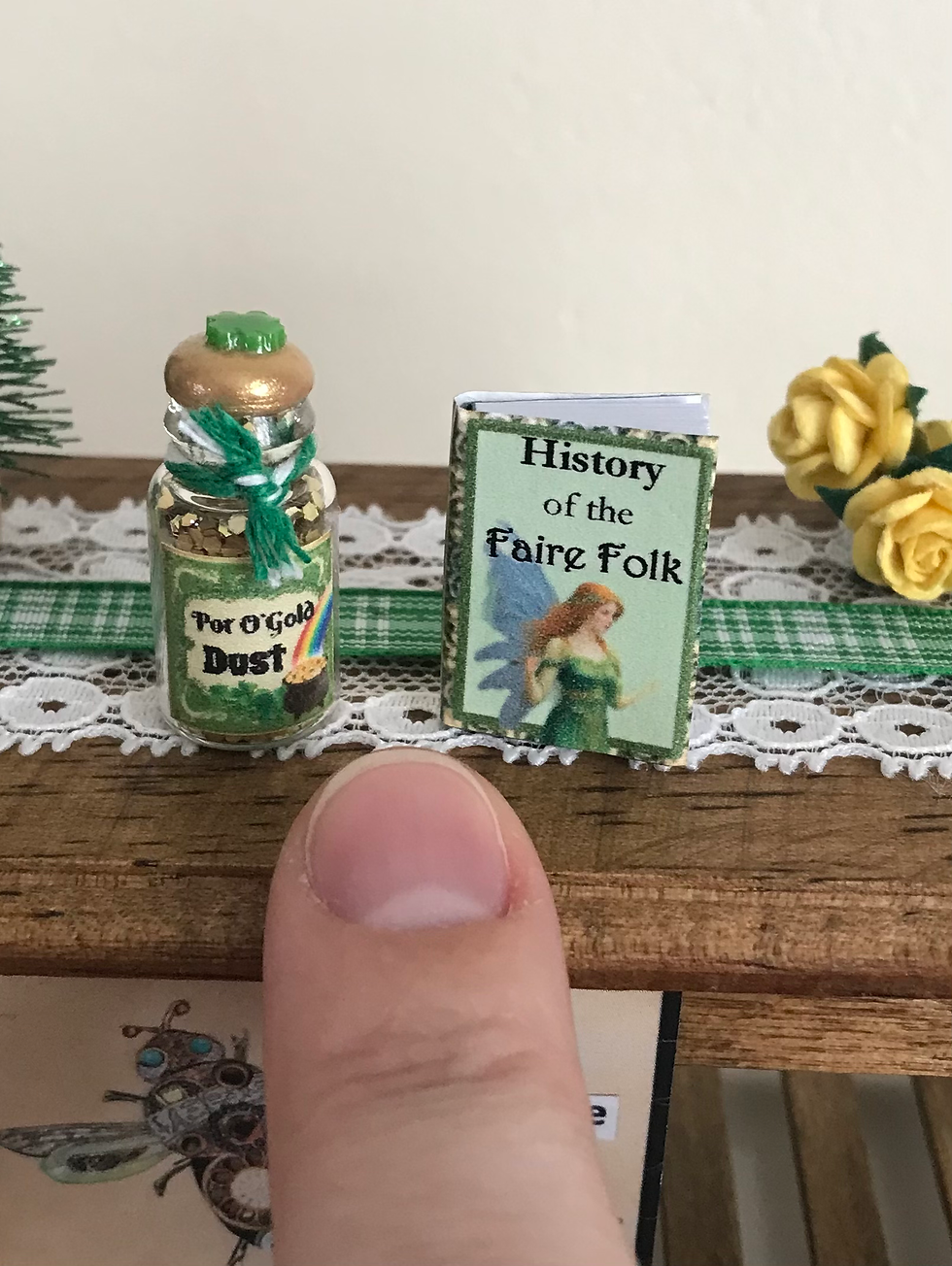 Set of 2 Mini Dollhouse St. Patrick's Day Book and Glass Jar of Pot O' Gold Dust